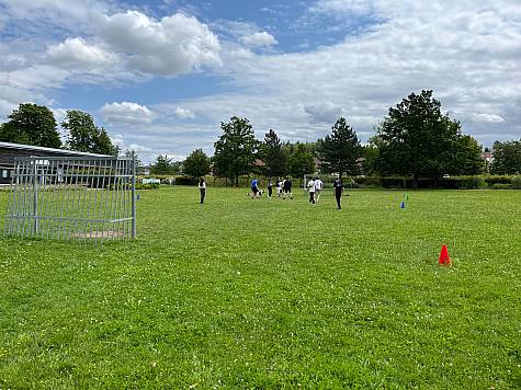 Am 17. Juli fand an unserer Schule ein aufregender Sporthalbtag statt, an dem fast 40 Schüler mit großer Begeisterung teilnahmen. Von 11:10 bis 14:30 Uhr standen drei spannende Sportarten auf dem Programm: Fußball, Volleyball und ein herausforderndes Geschicklichkeitsspiel.