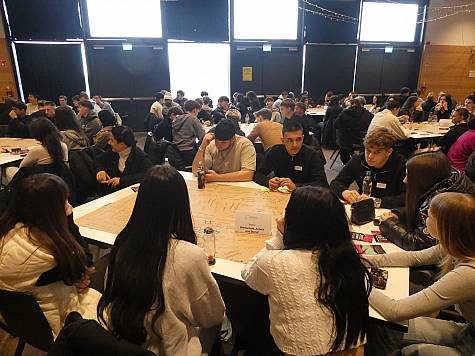 Im World-Café-Format diskutierten die Schülerinnen und Schüler engagiert, hielten ihre Ideen auf Plakaten fest und präsentierten zentrale Ergebnisse anschließend auf der Bühne. Die Gespräche waren lebhaft, respektvoll und inhaltlich fundiert – ein eindrucksvoller Beleg dafür, wie reflektiert junge Menschen gesellschaftliche Herausforderungen betrachten.