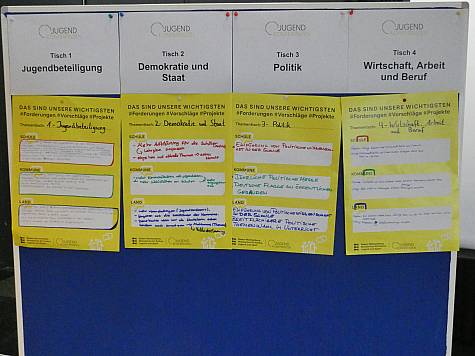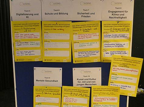 Insgesamt wurde an zehn Thementischen gearbeitet. Die Bandbreite reichte von Jugendbeteiligung, Demokratie und Politik über Wirtschaft, Arbeit und Digitalisierung bis hin zu Mentaler Gesundheit, Sicherheit und Frieden sowie Klima und Kultur.