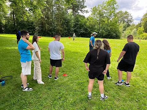Am 17. Juli fand an unserer Schule ein aufregender Sporthalbtag statt, an dem fast 40 Schüler mit großer Begeisterung teilnahmen. Von 11:10 bis 14:30 Uhr standen drei spannende Sportarten auf dem Programm: Fußball, Volleyball und ein herausforderndes Geschicklichkeitsspiel.